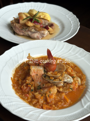 魚介で出しを取りそのスープで、野菜、魚、米を煮込んだリゾットスープは旨みをたっぷり吸ったとても美味しい一品に仕上がります♪